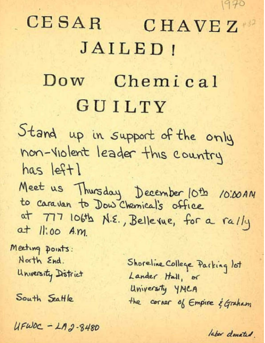 Poster protesting the arrest of Cesar Chavez, Digital Public Library of America, 1970
